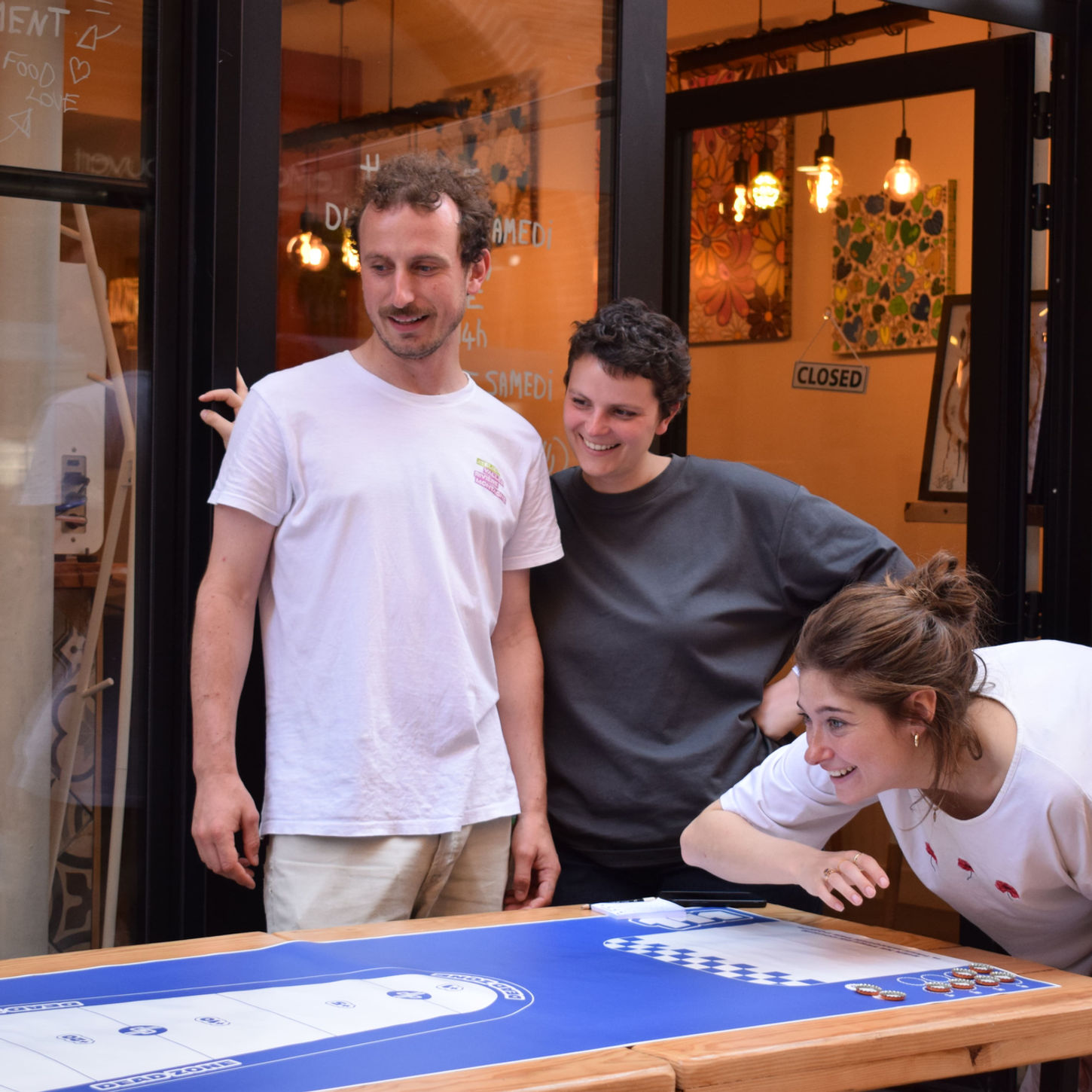 Facile à transporter, il se joue aussi bien en intérieur qu’en extérieur, sur une grande table ou directement au sol.